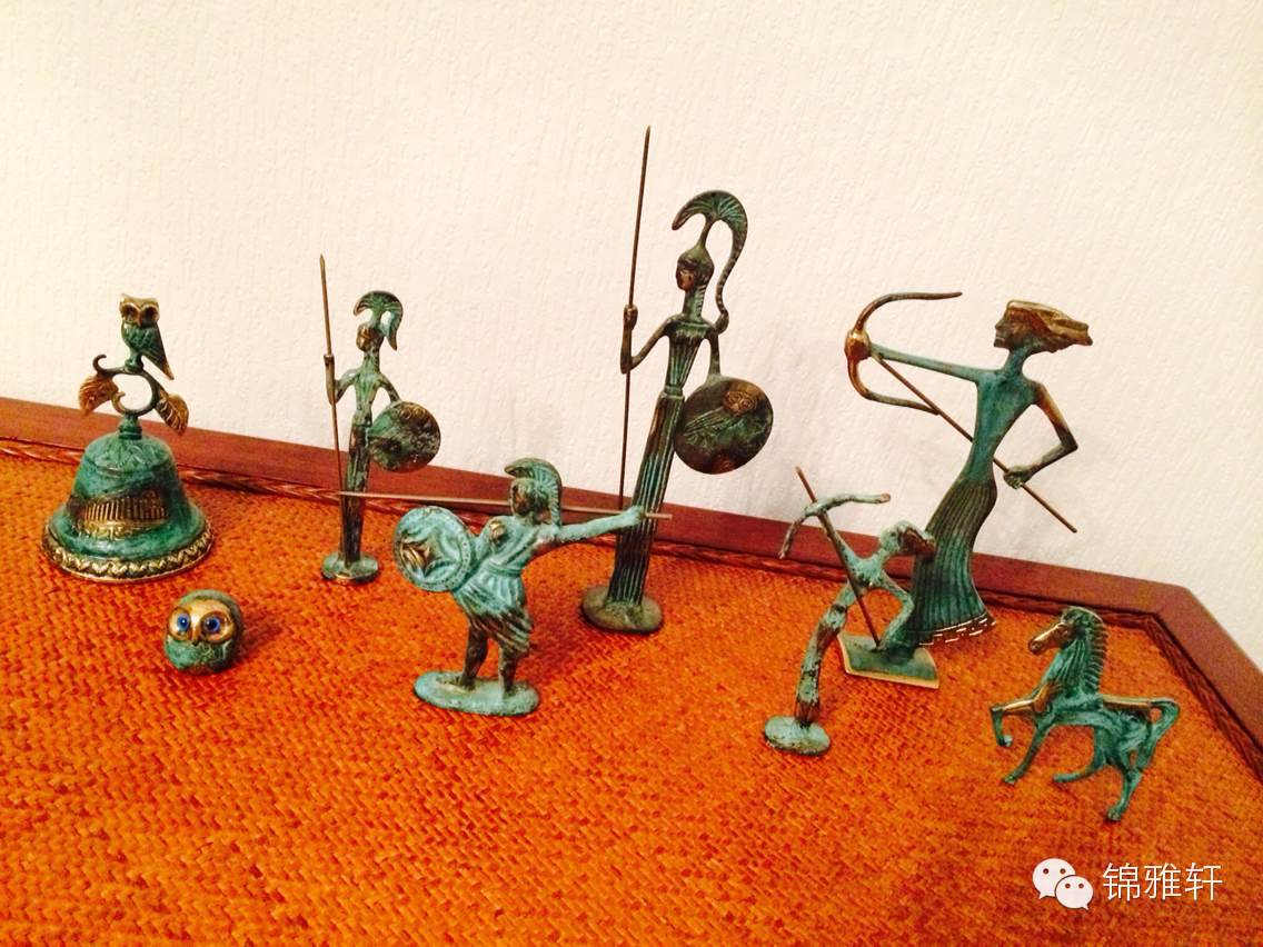 可爱的希腊青铜工艺品,形式简单,表现有力,带给人诸多幻想的爱琴海孕育的不止是爱情。猫头鹰象征智慧,是女神雅典娜的象征。手持弓箭的婀娜高挑女子让人联想起了雅典娜的另一身份——战争女神。在荷马史诗中,英雄们皆身披铜甲,手持铜武,战利品除了美女食物就是青铜。除了黄金白银,青铜的门槛与墙面是描述王宫的重要元素。这是迈锡尼青铜时代的缩影,其他诸多古希腊文学与神话皆以此为背景。