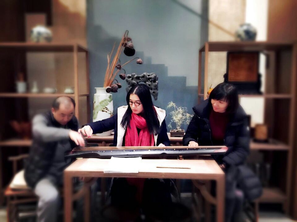 抹挑之间松涛阵阵,一曲罢了余音悠然。锦雅轩12月28日的古琴课就在茅毅老师的亲手指导中落幕。茅毅,号可庐山人,广陵派第十二代传人、诸城派第六代传人,琴境高古苍劲,清丽自然、深邃内敛,亦善斫琴。