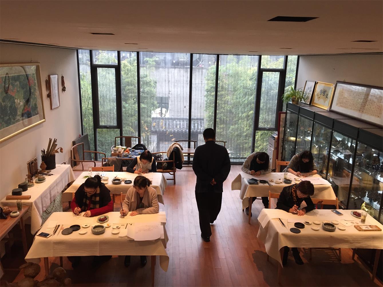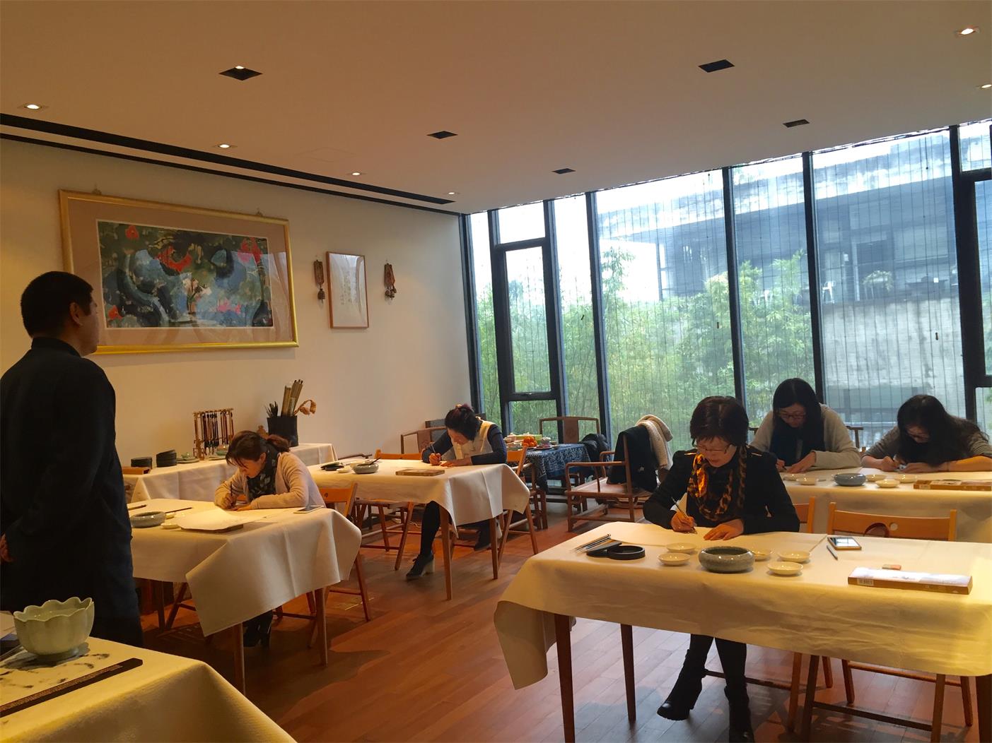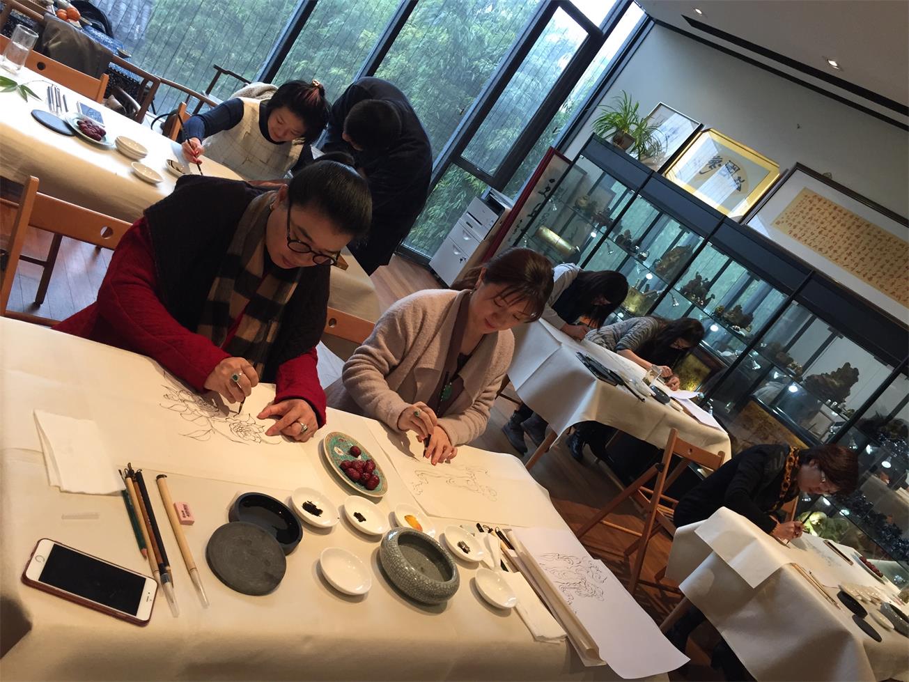 要一下子达到这种水准,当然很难。所以学员们在老师的指导下从基础做起——描摹。先开始勾勒线条,大家由开始的小心谨慎,到细腻大胆。一幅作品就悄然完成啦。