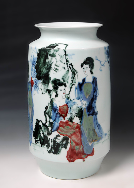 高温颜色釉绘画就是将颜色釉作为一种绘画的材料,也就是将高温颜色釉材料、工艺、绘画艺术和技巧有机结合,成为类似青花、粉彩一样的陶瓷美术门类。高温颜色釉陶瓷人物绘画艺术始于上世纪80年代末,由中国工艺美术大师李菊生老师首创,其“烟火凌空星满天”、“夕阳紫翠忽成岚”的特点为陶瓷艺术开辟了新的天地。本次参展的艺术家李青教授即为李菊生大师之子,他随父从事瓷上绘画艺术多年,在对材料的自如运用和创作手法的探索求新上颇有心得,通过扎根传统民族文化,构建起自己的艺术思维和精神品格。