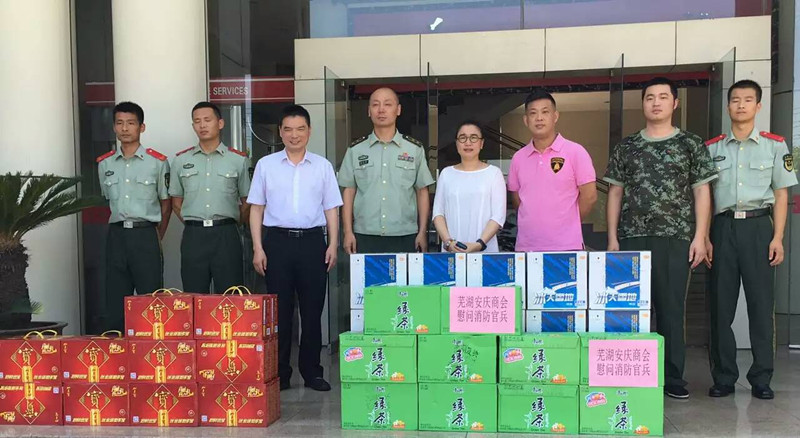 2016年8月1日,锦雅轩董事长、芜湖安庆商会会长程华女士,副会长程晓春,秘书长董邦琪等一行携带消暑降温饮品前往开发区消防大队进行节日问候。锦雅轩祝福全体消防官兵身体健康、节日快乐!