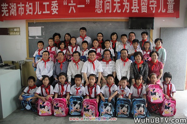 “六一”儿童节来临之际,芜湖市四大班子领导带领市妇儿工委部分成员单位负责人来到无为县福渡镇中心小学,看望学校的留守儿童和困难儿童,了解他们的学习生活情况,锦雅轩董事长程华女士也参加了此次慰问留守儿童活动。