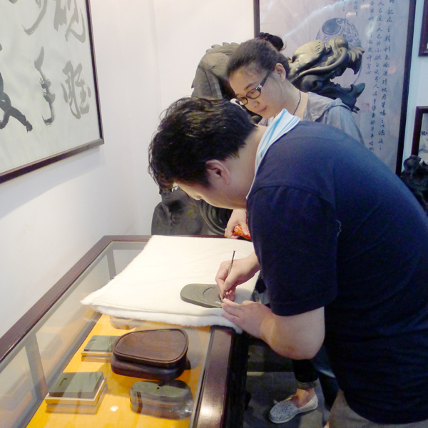 在屯溪老街“砚雕世家”的展厅内,一件件气势磅礴的砚雕作品让人惊叹,这些精雕细刻的砚台都出自中国最年轻的工艺美术大师王祖伟老师的笔下。王祖伟老师多次为党和国家领导人、书画大家、国际名人亲手创意,设计制作过精品歙砚。