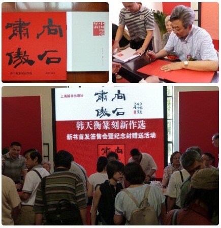 著名篆刻大师韩天衡老师于2012年8月18日在上海展览中心人文艺术馆举行新著《向石啸傲-----韩天衡篆刻新作》现场签售活动。